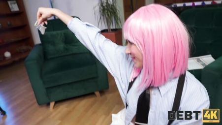 This girl always arranged pleasant surprises for her boyfriend. He was a modest guy and could not always take the initiative. But the girl was also the kind of entertainer who loves to arrange hot role-playing games. Today she wore heels and a pink wig, looking like a secretary. But her friend played the role of a tired boss, to whom she would help relax and give pleasure. The girl in a pink wig gave him a great blowjob and stood doggy style in front of him on the sofa so that he would fuck her quickly.