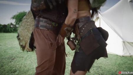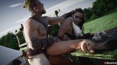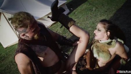 The blonde was a real fighter, but she still lost to this strong and brutal man. She lost the battle and was now ready to obey him, to fulfill any of his orders or desires. What desire could a man have next to such a hot bitch? Of course, only sex! So the girl began to please his powerful trunk with an excellent blowjob. She sucked so hard that he got hot to the very limit. And then the hot couple had unforgettable sex in a green meadow.